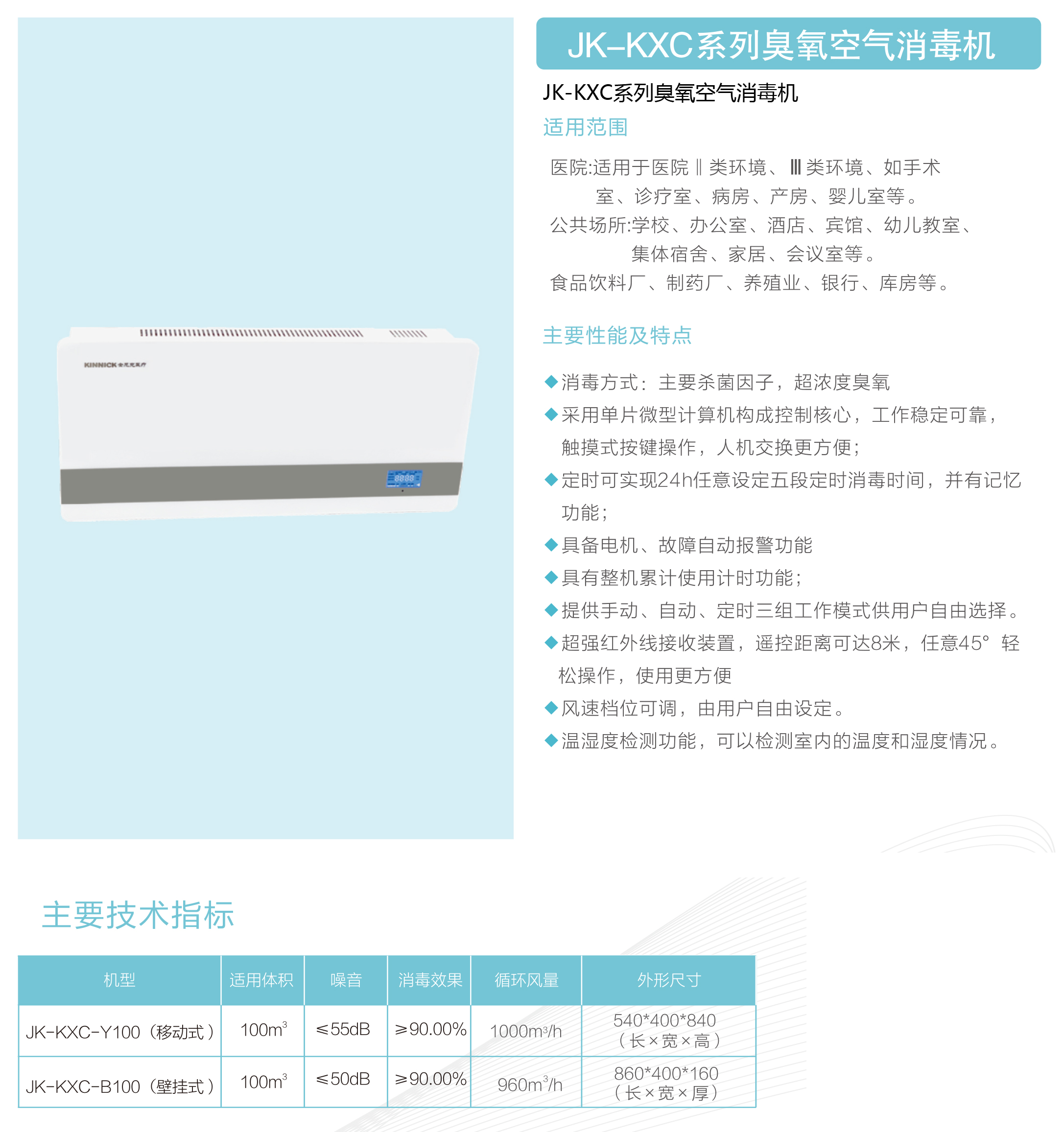 JK-KXC系列壁掛式臭氧空氣消毒機